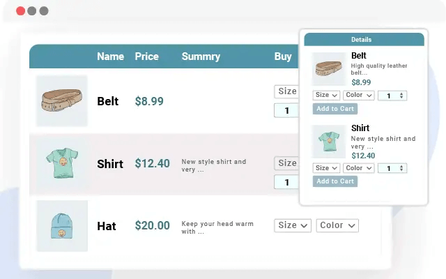 - One-page shopping: Browse and purchase without leaving the page.