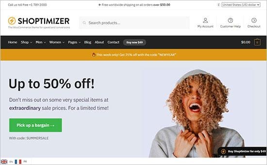 Shoptimizer is another WordPress theme which is fully compatible with WooCommerce. The amazing features such as user-friendly navigation menu, easy to use shopping cart page and many other notable features makes it a perfect choice for designing an ecommerce website. If you are looking for a theme to improve your customer experience and increase the conversion rate, don’t hesitate to install Shoptimizer on your website.