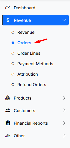 In the main menu and navigate to Revenue > Orders. This is the most important report for tracking sales performance based on order status.
