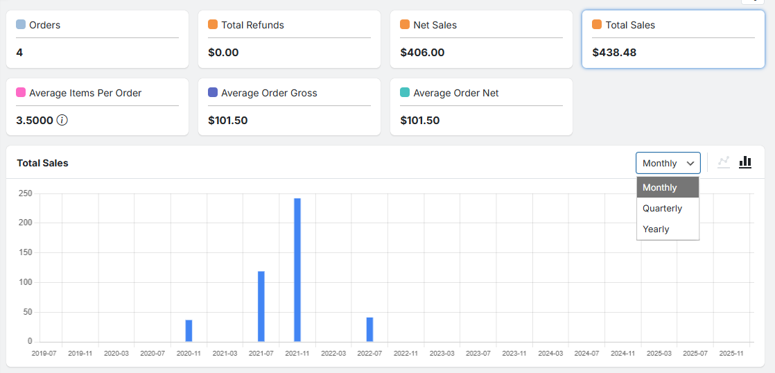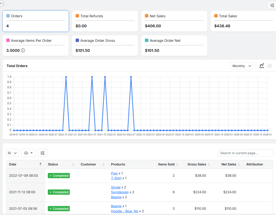 Once filtered, you can review your order totals and revenue by excluding refunded or cancelled orders. While this provides a clearer picture than unfiltered reports, the insights remain relatively basic.