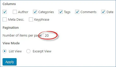 Now, in the pagination section, set the “Number of items per page” option so that all the products you have are displayed on one page. Finally, click on “Apply”.