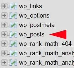 After entering “phpMyAdmin“, you will see the image below, where you can enter the name of your database from the left and then click on “wp-post” from the window that opens.