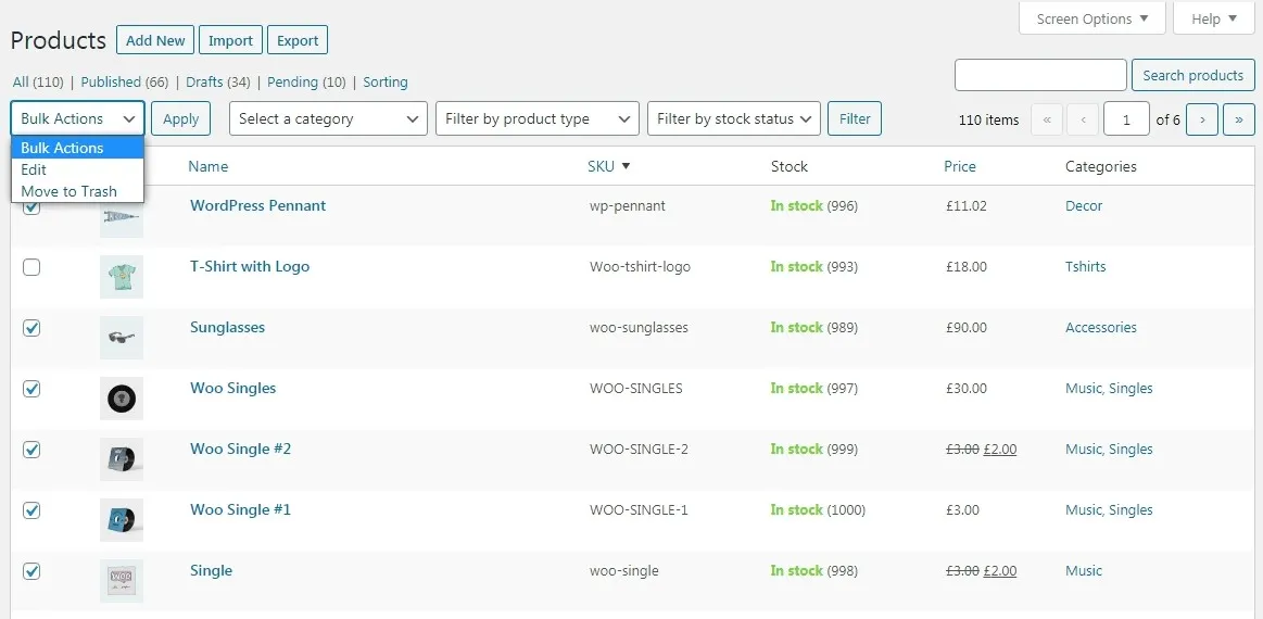 The easiest way to bulk delete WooCommerce products is to remove them manually through the WooCommerce product bulk edit page. This is an efficient method for online stores with a relatively small volume of products.