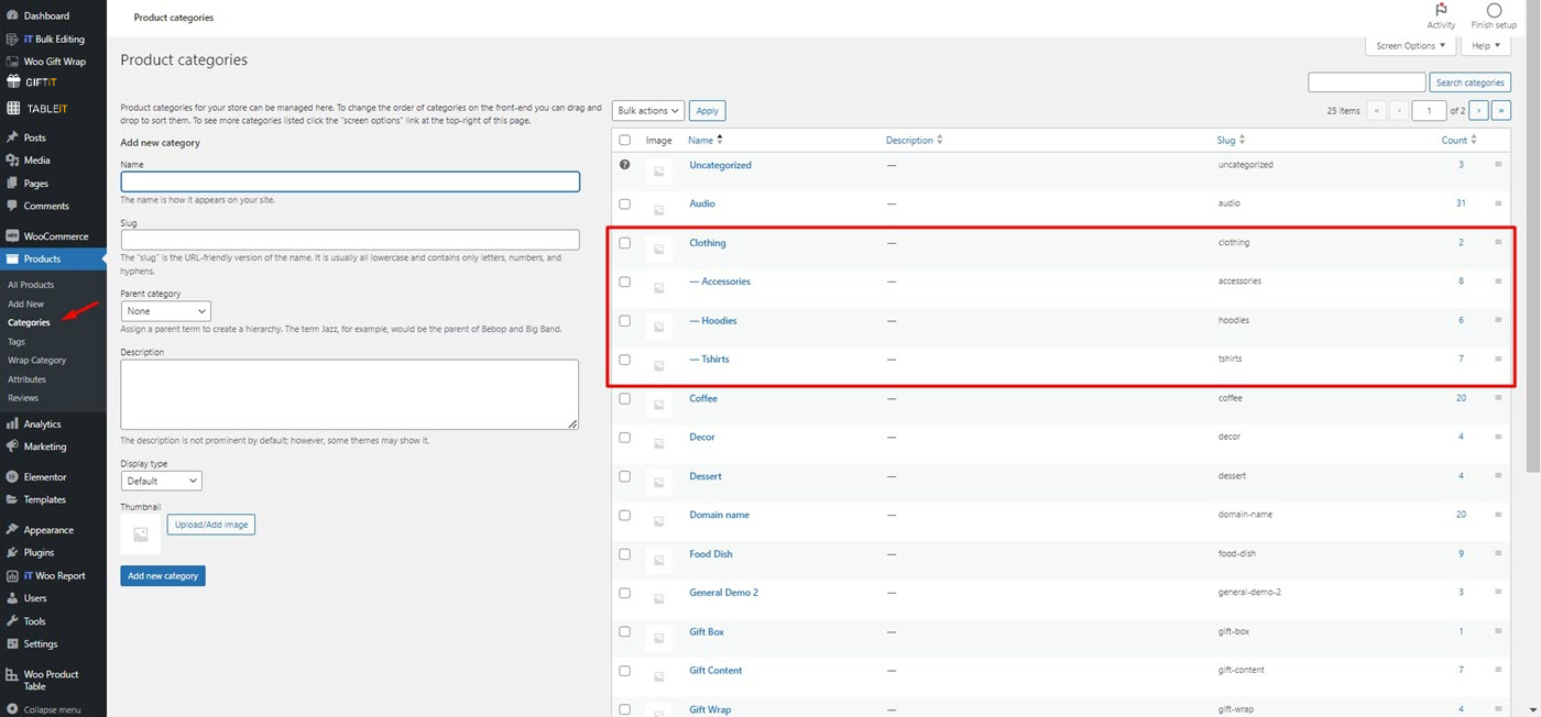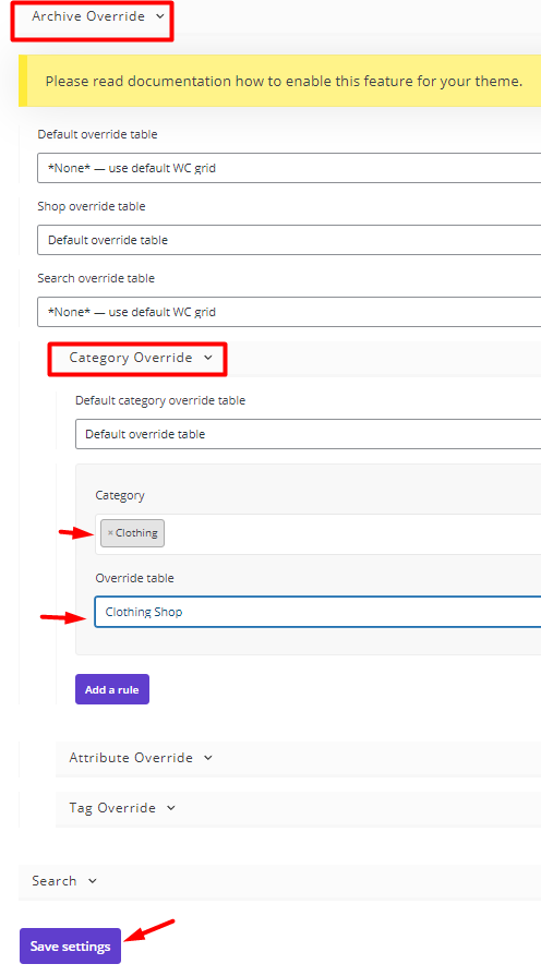 If you have a lot of products in different categories in your shop, you may need to override the clothing category page with the product table. To make this happen, follow the below instructions: