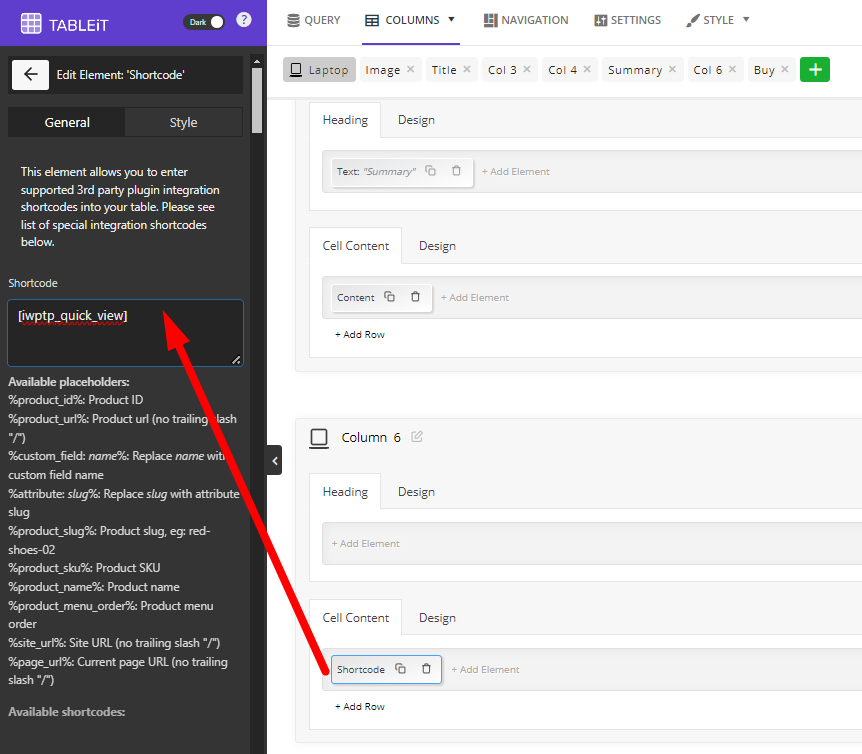 - Copy the Quick View shortcode from the Yith quick view plugin.