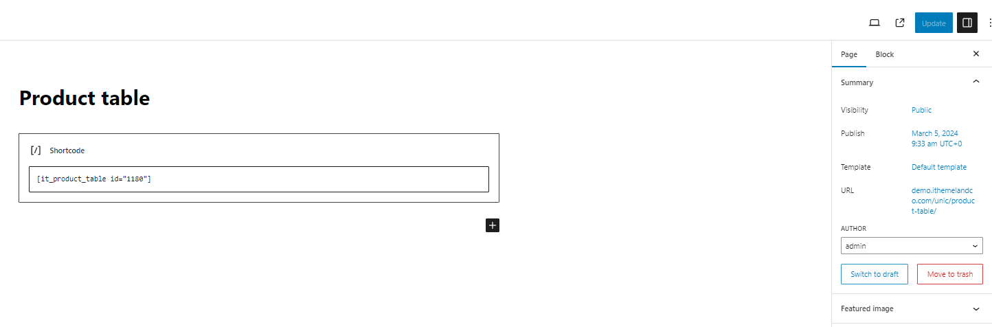 Step 3-5: Use Shortcode to display your product table on the WooCommerce shop page