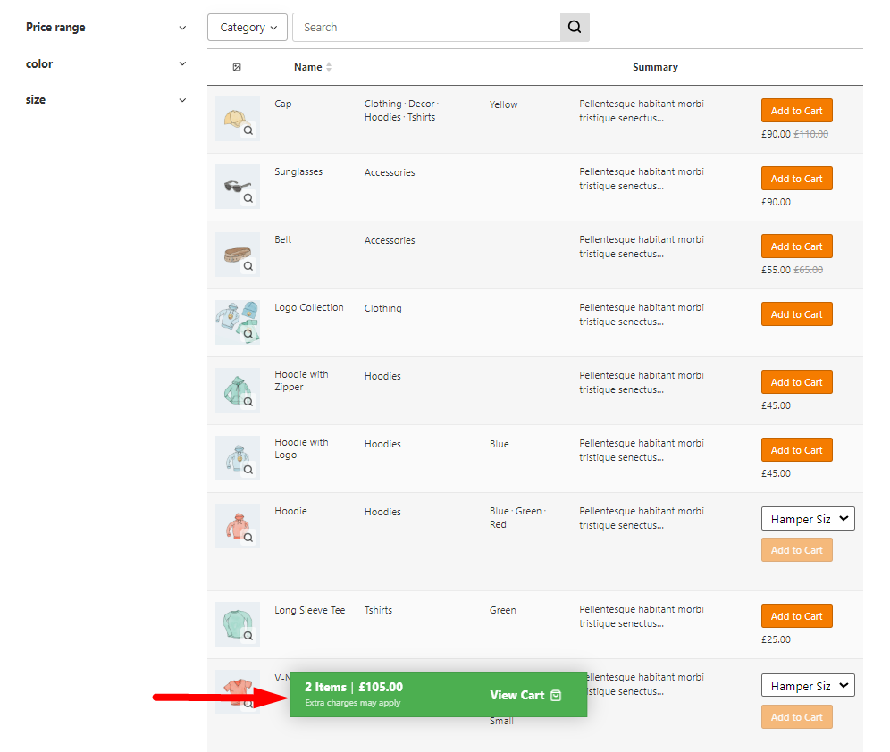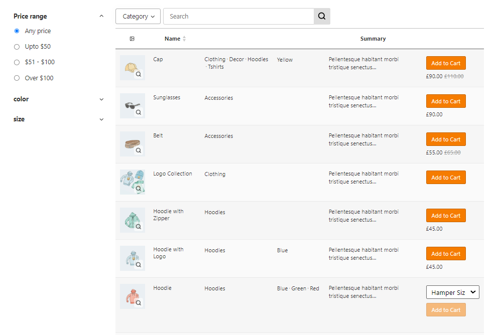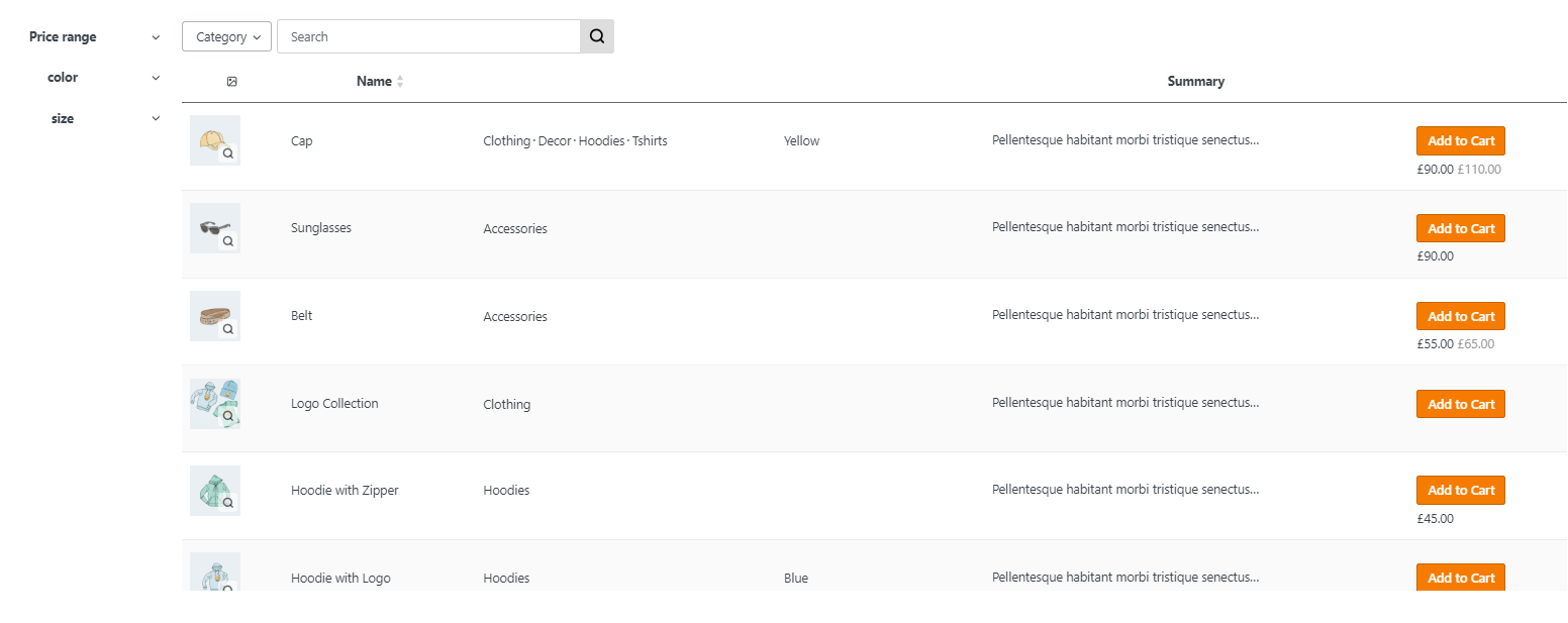 Step 3: Use the WooCommerce product table plugin to sell clothes