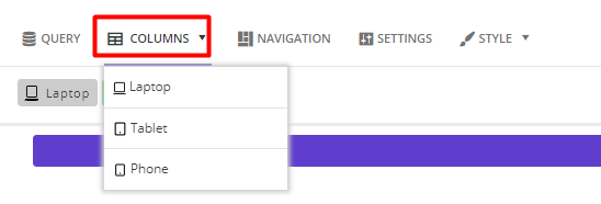 Adding columns in the WooCommerce product table plugin is enjoyable with the user-friendly interface provided in the Columns tab. To start working with the column editor, first, you need to click on the Column tab and choose Laptop from the list of devices.