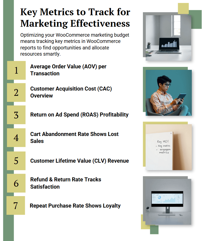 Optimizing your WooCommerce marketing budget requires tracking key metrics in WooCommerce reports, which are helpful to identify opportunities and allocate resources effectively.