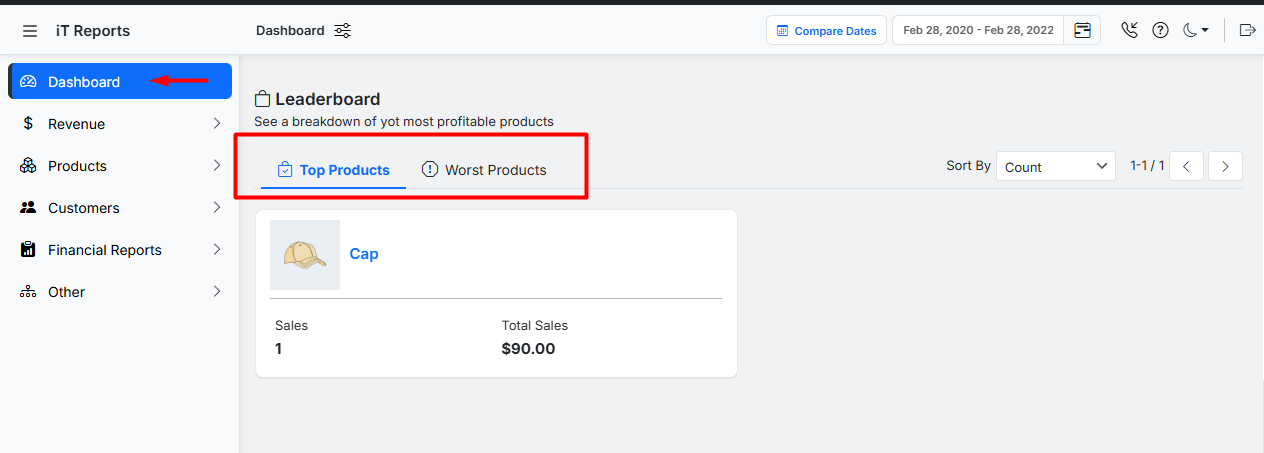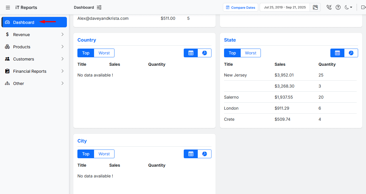 Product reports analyze the performance of individual items in your catalog. They display metrics such as best-selling products, low-performing items, stock levels, and sales by category.