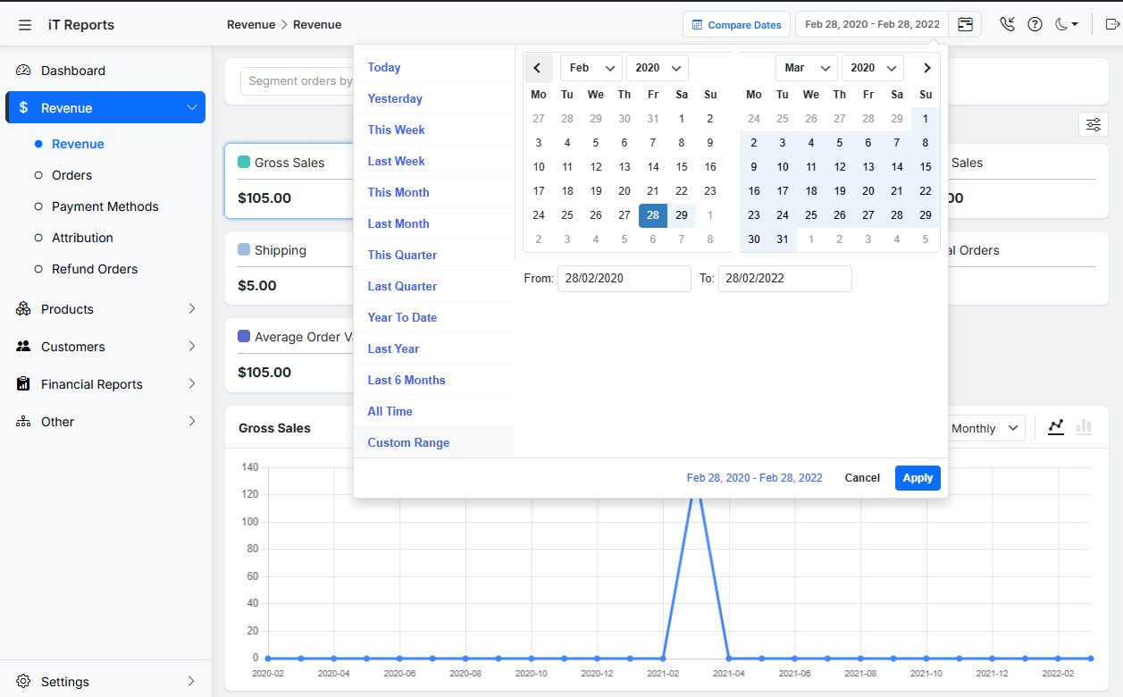 You can get help from this report to identify sales trends, peak selling periods, and identify the impact of marketing campaigns on revenue.