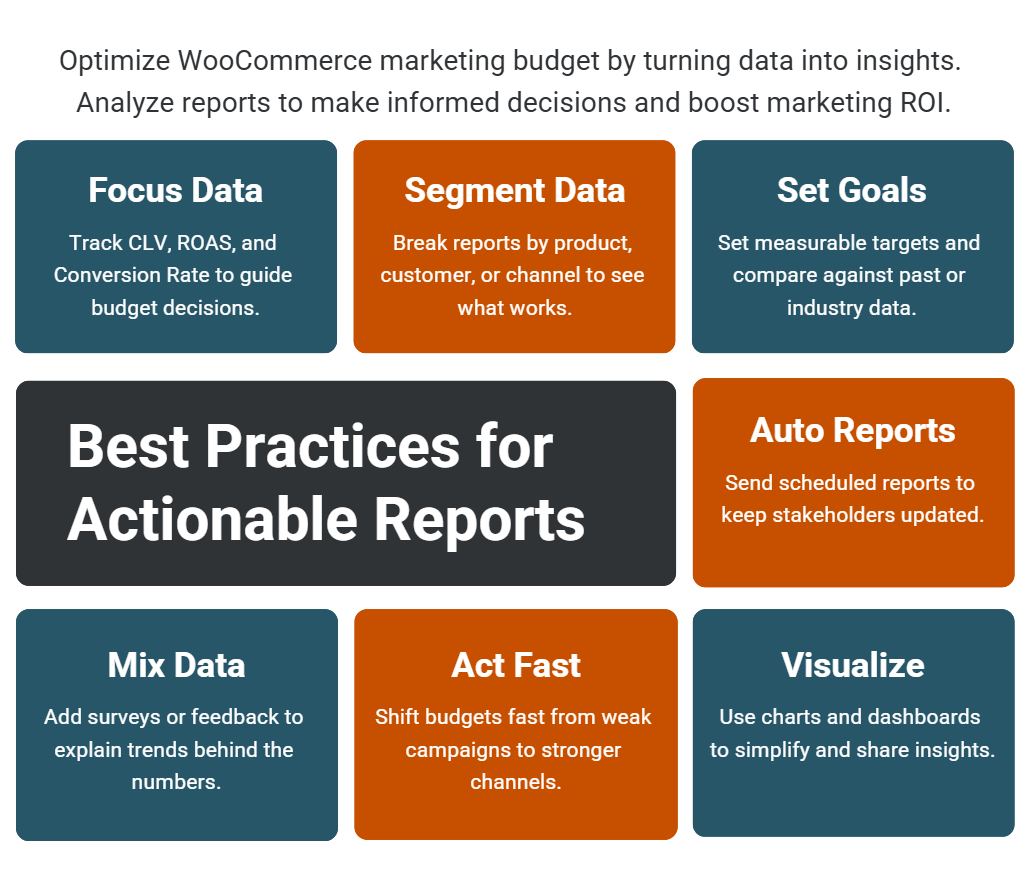 Effective WooCommerce marketing budget optimization relies on transforming raw data into actionable insights. By analyzing WooCommerce reports, you can make informed decisions to optimize WooCommerce marketing strategies and maximize ROI. Here are the key best practices: