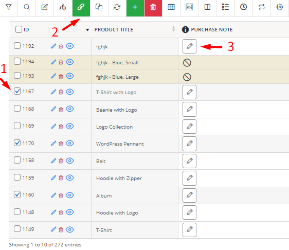 The WooCommerce product bulk edit plugin provides you with flexible methods to add product purchase note to multiple products at once. Let’s take a look at them with some examples.