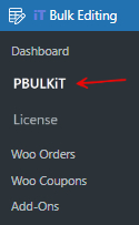After activation, you will see the IT Bulk Editing tab in the WordPress Dashboard. Then, you need to click on the Woo Products option to visit the main page of the plugin.