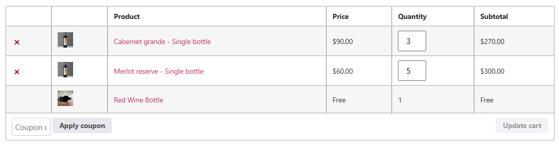 After saving, test the rule by adding different quantities of coffee bags to your cart. Verify that the Red Wine is added correctly at each pricing threshold.