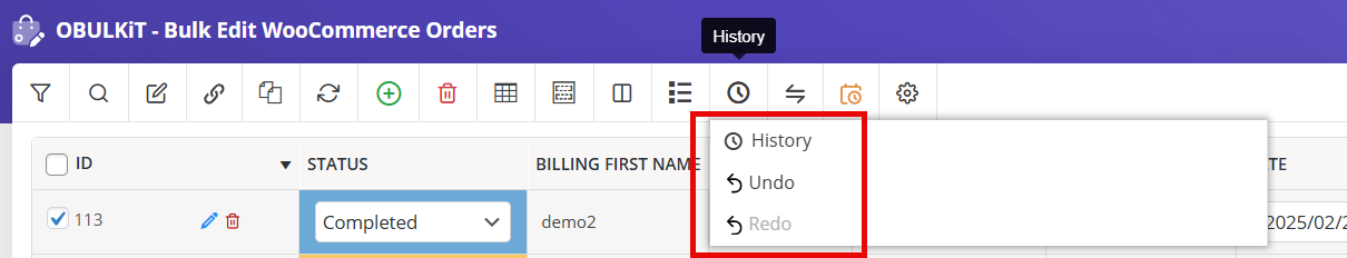 Reverting the last changes can be done in two ways in OBULKiT – Bulk Edit WooCommerce Orders Plugin if you need to reverse operations or operations.