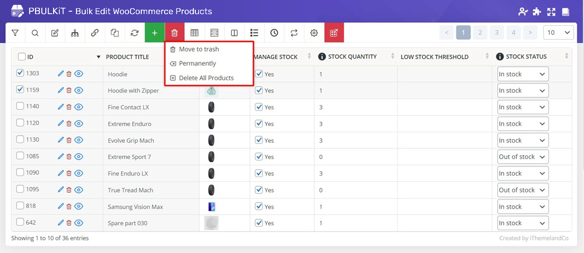 Deleting multiple products from the online stores is a common and necessary option. We considered an option to delete multiple products in the PBULKiT – Bulk Edit WooCommerce Products plugin.