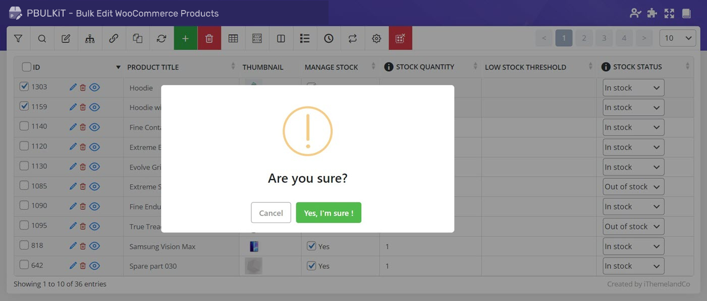 The products will be permanently deleted from the list of products on your website by clicking on “Yes, I’m sure”, and you will not have any access to them to restore or make any other changes in the future.