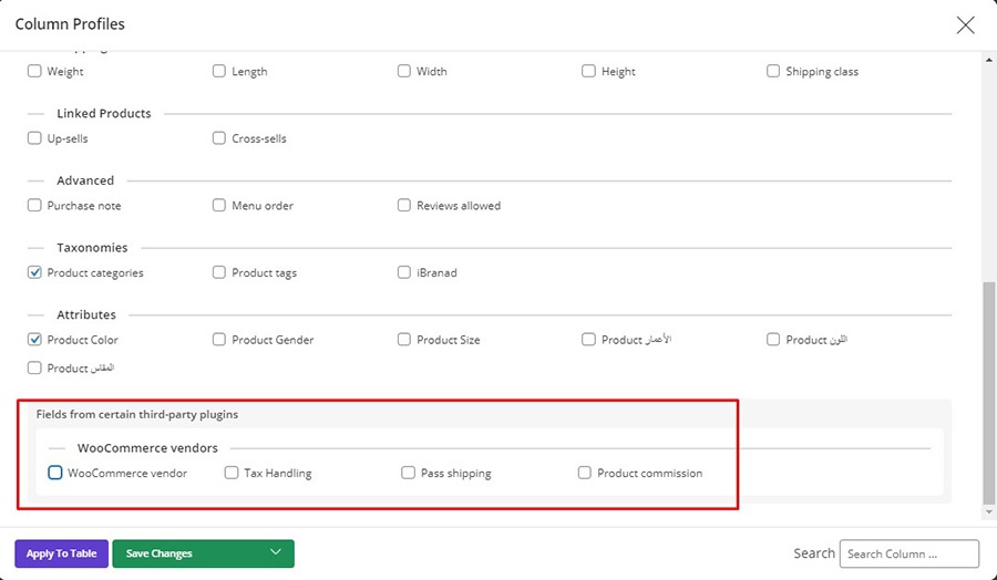 - Column Profile: It’s possible to display the vendor of each product, this means adds a new column for displaying the vendor.