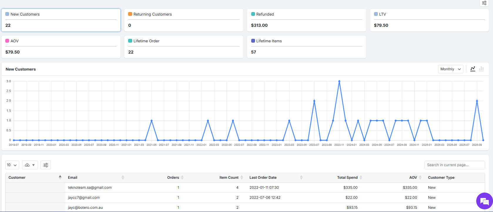 To gain valuable insights into your customer demographics and purchasing behavior, first navigate to Customers > All Customers then set the following filters: