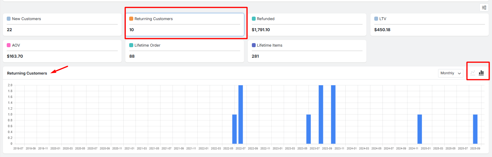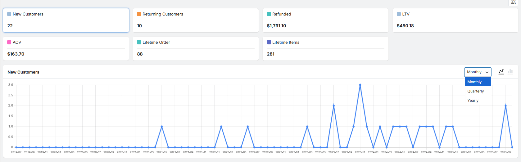 Example: To specifically see the report for new customers, use the Customer Type filter. Select “New” to view first-time buyers, then click Apply.