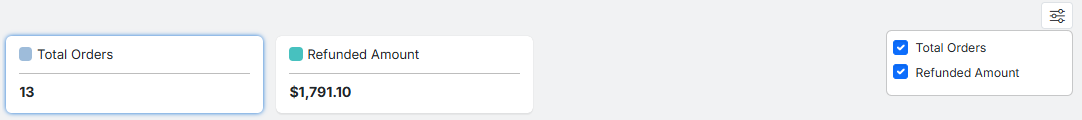 For instance, if you click on the Total Orders, you can review all orders that were refunded across your selected date range. This visualization makes it easy to spot if refunds are increasing or if there was a specific problem period.