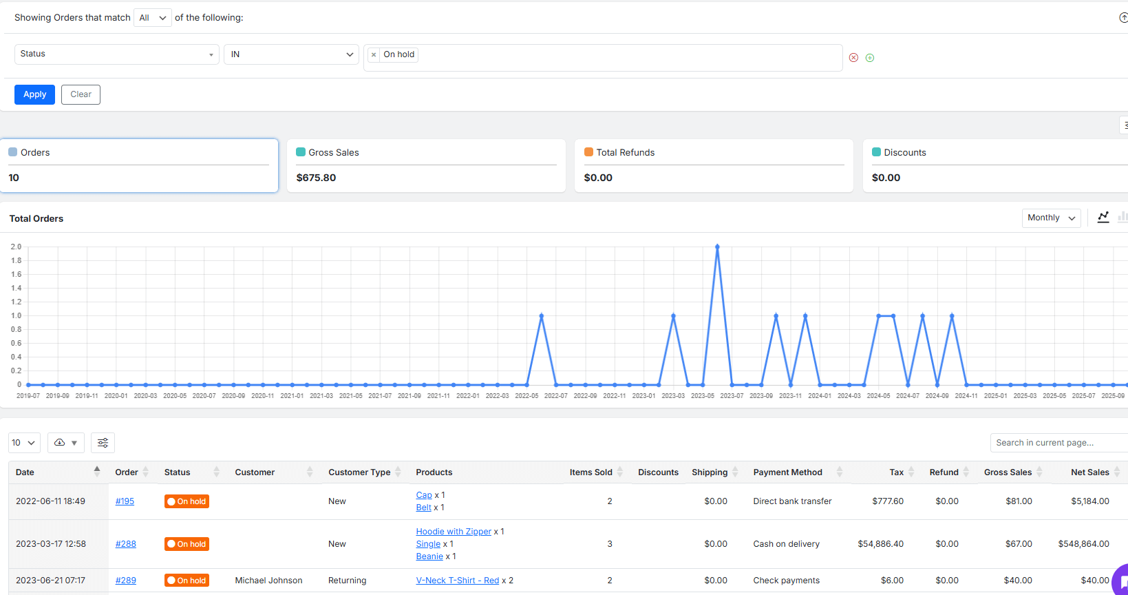 ّFor example, to see only orders that are on hold, simply select “On Hold” from the Order Status filter and press the Apply button as shown below: