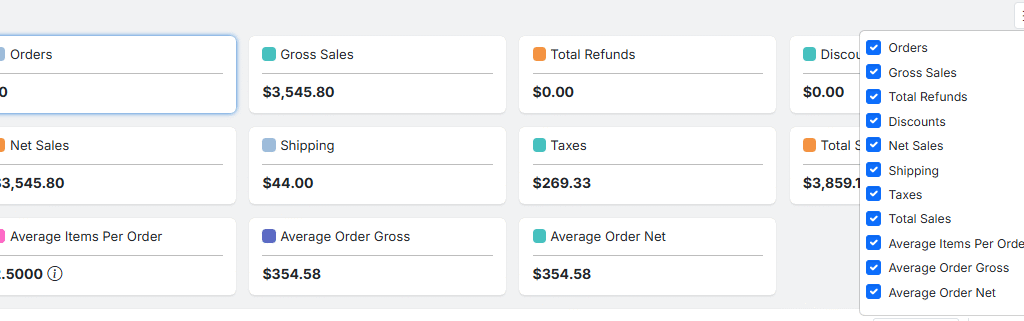 You can tailor this summary to your preferences. By clicking the Customize button, you can select which specific metrics to display or hide, ensuring your dashboard only shows the figures that matter most to your analysis.
