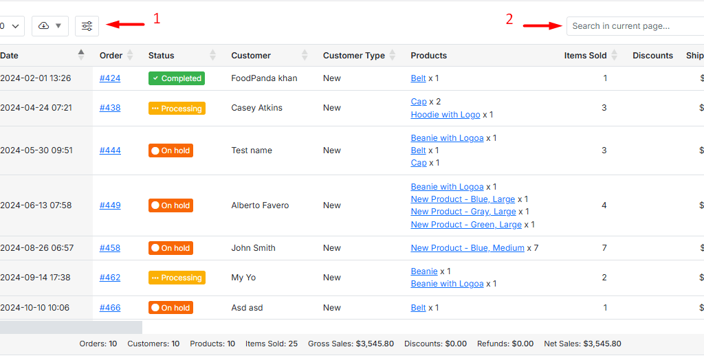 2. Search box Filtering: Utilize the search function and additional filters to find specific orders or customers quickly.