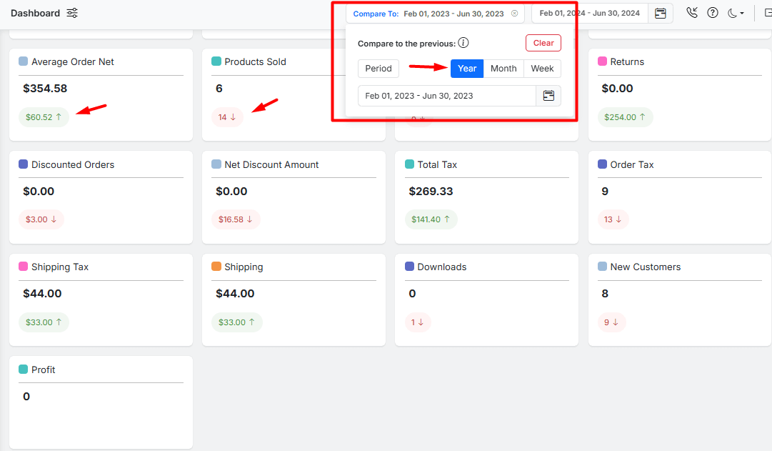 The plugin will then display your key metrics—like Net Sales, Order Count, and Average Order Value—side-by-side. This immediately shows you percentage increases or decreases, helping you understand if your performance is improving, declining, or staying flat over time. This direct comparison turns raw data into a clear story about your business trajectory.