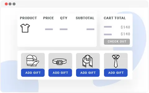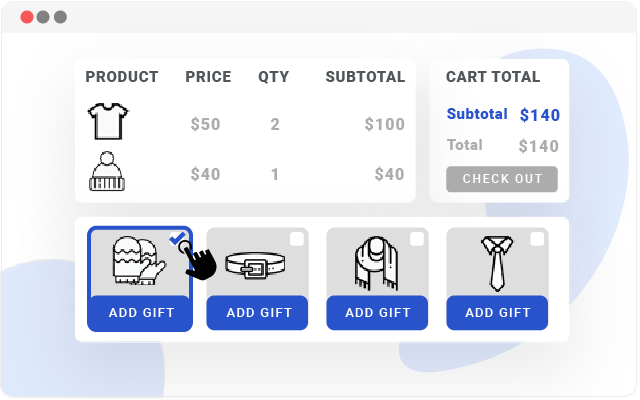 Let customers choose from a list of eligible gifts based on their purchase, right from the cart or checkout.