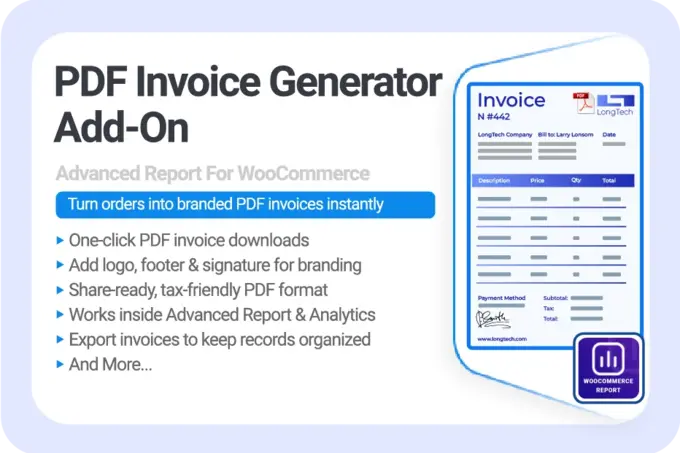 Easily generate professional invoices for your WooCommerce orders in Advanced Report for WooCommerce...